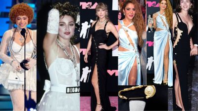 ولفتتنا إطلالات كل من تايلور سويفت وشاكيرا، حيث ظهرن بتصاميم مميزة بصيحة الـ"دبابيس" المميزة مع الفتحات والشقوق الجانبية التي تميز فساتين "فيرساتشي" الأيقونية.