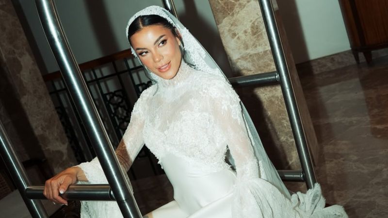 تألقت الممثلة وطبيبة الأسنان هايدي خالد في حفل زفافها على المخرج هادي الباجوري، بفستان أبيض راقٍ من تصميم Dolly K Designs، جمع بين البساطة والأناقة الرفيعة.