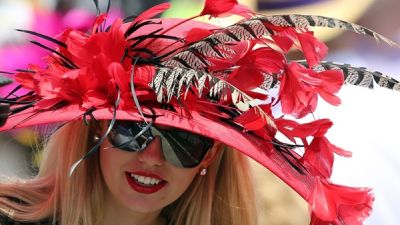 اختيار قبعة مناسبة لسباق الخيول. هناك العديد من المصممين المعروفين والقبعات ذات الاسعار المعقولة في المحلات المتخصصة.