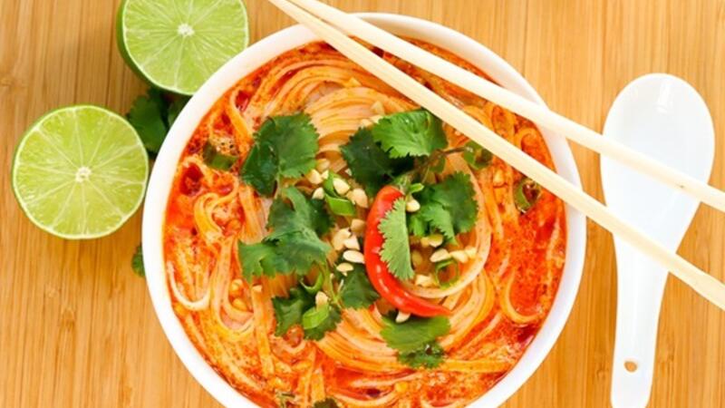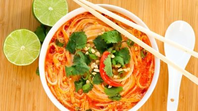حساء الشيعرية التايلاندية الحارة وصفة سريعة، ودافئة بالنكهات التايلاندية العطرة.