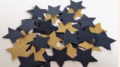 - الآن قم برسم أشكال النجوم والهلال على الورق المقوى، وقصها ورتبها في مجموعات.