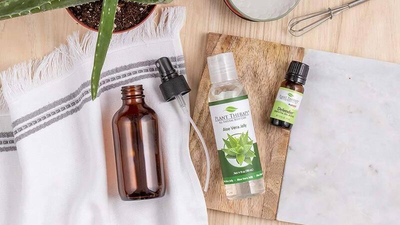 لتحضير لمطهر ، اخلط هلام الصبار (2-3 ملاعق كبيرة) في وعاء. أضف إلى ذلك بضع قطرات من بندق الساحرة والزيوت الأساسية التي تفضلها. من المفضل أن تستخدم الزيوت الأساسية المعتدلة التي تساعد على مقاومة انتشار البكتيريا.