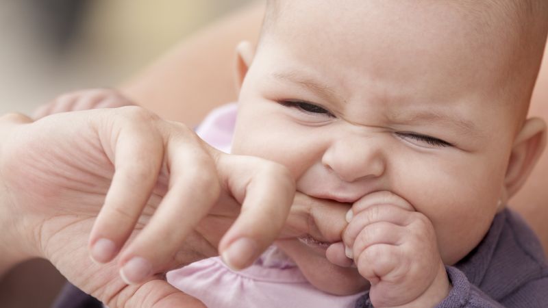 4. تجنبي إعطاء طفلك الأطعمة الصلبة أو الألعاب، لأنها يمكن أن تلحق الضرر بالأسنان.