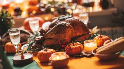 • تشكل الأطعمة في هذا اليوم جزءًا أساسيًا من الاحتفالات بعيد الشكر، حيث يشارك جميع أفراد العائلة في إعداد المأكولات الشهية، تشمل هذه الأطعمة:البطاطس الحلوة، الديك الرومي، البطاطس المهروسة، خبز الذرة، صلصة التوت البري، إلى جانب الفطائر المتنوعة مثل فطيرة اليقطين، التفاح، والجوز.