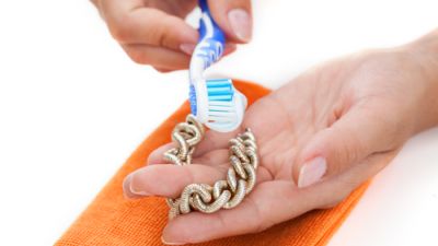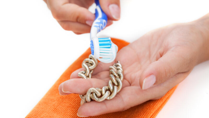 3- معجون الأسنان: وذلك عن طريق مزج كمية قليلة من معجون الأسنان مع ملعقتين كبيرتين من الماء، واستخدام فرشاة أسنان ذات شعيرات ناعمة في تنظيفها، أو عن طريق وضع المزيج على قطعة من القماش، ومسح القطع بها، ثمّ غسلها بالماء، كما وتعد هذه الطريقة من أكثر الطرق المناسبة لتنظيف وتلميع الذهب المخدوش.