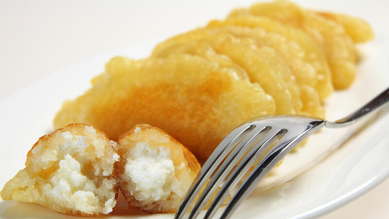 - نحشو حبات القطايف بحشوة الجبن، نغلقها على شكل هلال، نتأكد تماماً من إغلاق أطرافها.