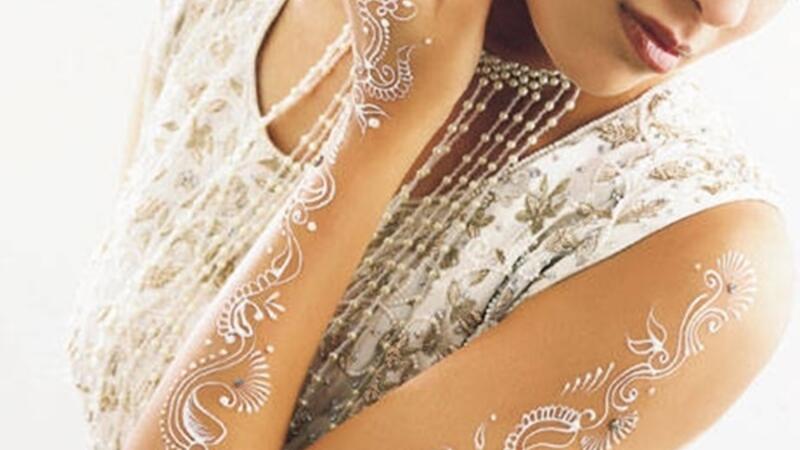 الحناء البيضاء هي رسومات حناء جميلة ترسم على يد واحدة، باستثناء أنها بيضاء اللون وليست بنية أو سوداء كالمعتاد. وبالاعتماد على المواد المستخدمة، يمكن أن تدوم من خمسة أيام إلى أسبوع على الجسد.