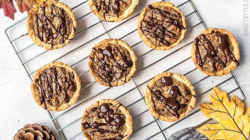هذه الفطائر الصغيرة بالبيكان المرصعة بالشوكولاتة الداكنة سهلة وشهية.