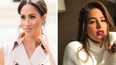 إطلالة فوز جاءت قريبة جدًا من إطلالة "ميغان" مع اختلاف بسيط وهو اللون، حيث اعتمدت فوز لون الـNude وليس الزهري.
