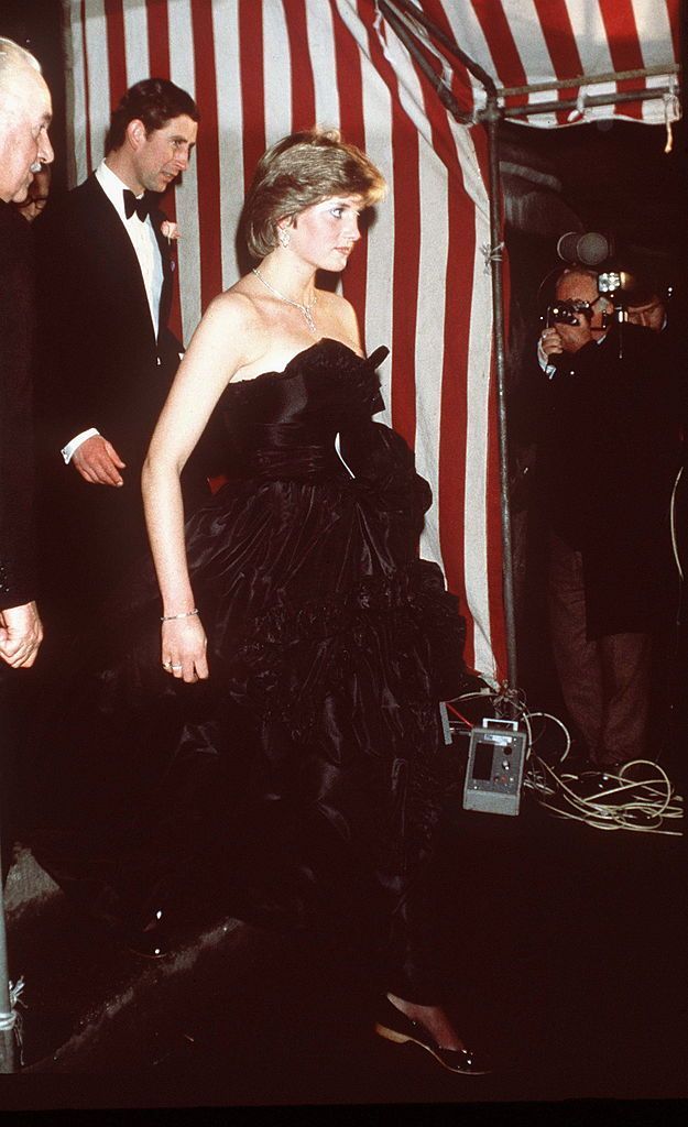 اختارت الأميرة ديانا سبنسر فستانا أسود بدون حمالات من تصميم (The Emanuels) لأول مشاركة عامة لها ولخطيبها في حفل موسيقي في قاعة جولدسميث بلندن لمساعدة نداء تطوير دار الأوبرا الملكية بكشاكش سوداء راقية وصدر مكشوف تحدت به الأعراف الملقاة عليها آنذاك.