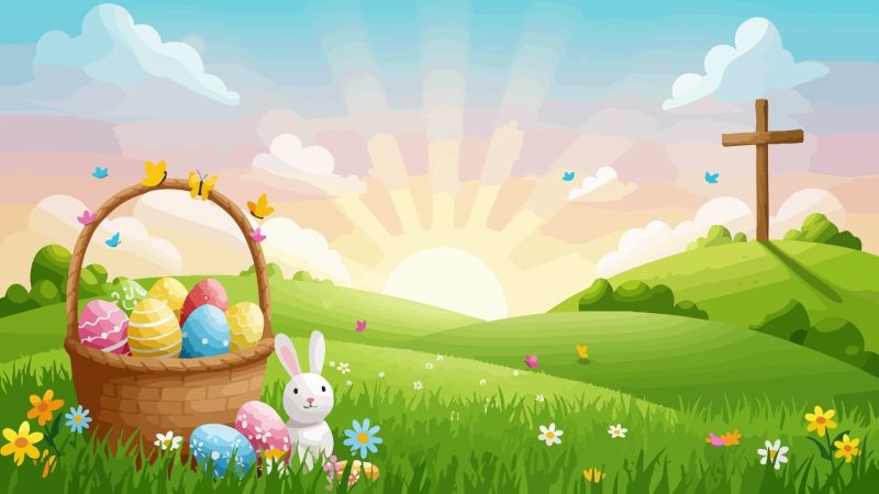 ويُكتب أسفله: "عيد فصح مجيد، مليء بالفرح والقيامة الجديدة"