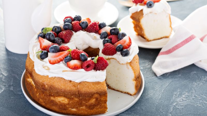 البوابة - كعكة طعام الملائكة (Angel's food) حساسة وحلوة، بعض المناطق تطلق عليها اسم كعكة الشيفون. مما يجعلها حلوى صيفية مثالية، خاصة عندما تكون مغطاة بالتوت الطازج!