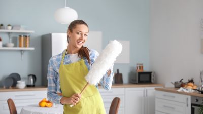 - مسح الأرفف بشكل جيد والخزائن لإزالة الغبار والدهون المتراكمة.