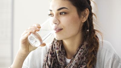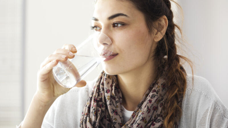2- الإكثار من شرب الماء كل يوم، أي بما يعادل ثمانية أكواب على الأقل، لأنها تلعب دوراً أساسياً في نضارة البشرة، وترطيب الجسم، وتخليصه من السموم.