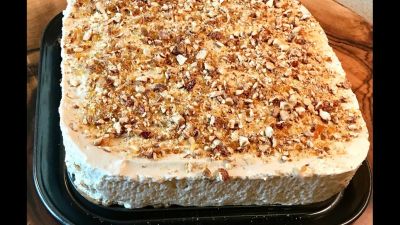 - ثم ضعي كمية الكريمة المتبقية فوقها، ثم ضعيها في الثلاجة حتى تبرد تماماً، ثم زينيها بالشوكولاتة أو الكاكاو، وصحتين وعافية.