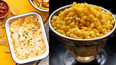 افرد غموس الذرة في طبق كسرولة سعة 2 لتر ، ثم ضعه فوقها بما تبقى من الجبن . انقلي الطبق إلى الفرن واخبزي غموس الذرة لمدة 20 دقيقة في الفرن المسخن مسبقًا 375 درجة فهرنهايت ، أو حتى تذوب الجبنة في الأعلى ويغلي حول الحواف. يقدم ساخنا.