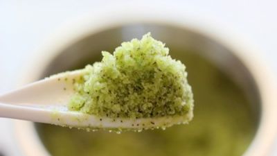تخلط جميع المكونات حتى يتم دمج مسحوق الشاي الأخضر في السكر.