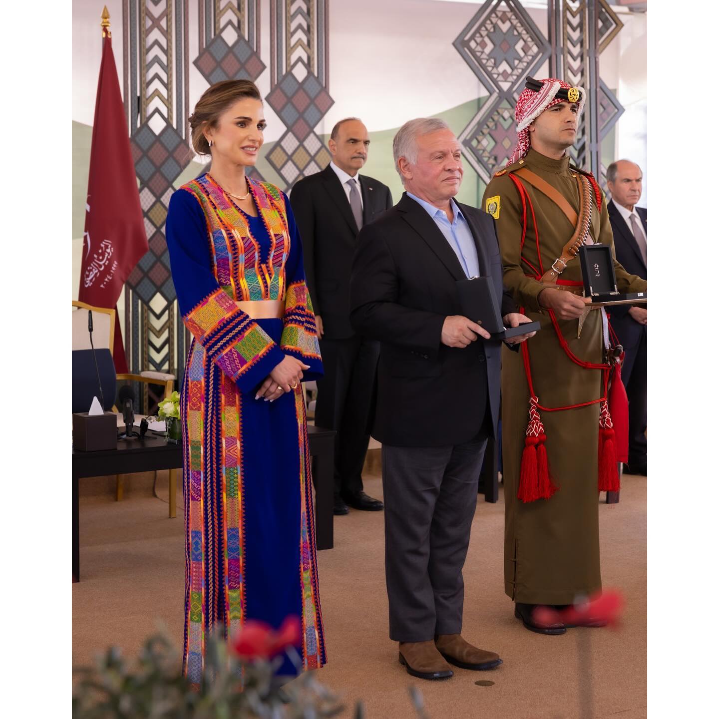 وقد أطلت أيضا خلال الاحتفال باستقلال المملكة الأردنية الهاشمية بثوب أردني تقليدي راقي للغاية، وقد زادته الملكة رانيا تألقا وأناقة بتنسيقها وتسريحة شعرها الجميلة، حيث اعتمدت ثوب أردني تقليدي باللونين الأبيض والأزرق بالأكمام الواسعة والأنيقة، وقد جاء القوب راقيا بالطول الغير متناسق مما خلق مظهرا أنيقا للغاية.