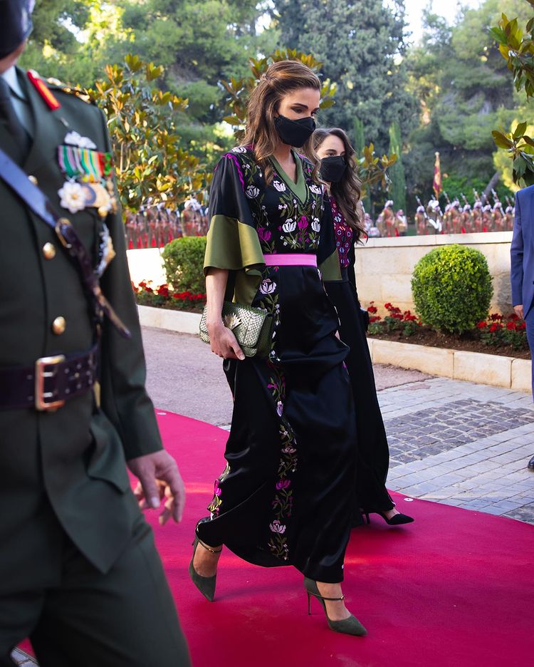 تحرص الملكة رانيا العبدالله على اختيار الإطلالات العصرية ومزجها بكل رقي مع تفاصيل التراث الأردني، حيث أطلت من قبل بإطلالة راقية خلال فعاليات الاحتفال بالاستقلال الأردني بإطلالة ملكية بتصميم العباءة بطول كامل وقصة شبه مجسمة وتفاصيل الأكمام المستوحاة من القفطان التي تميزت بكونها واسعة وراقية، حيث جاءت القطعة الأنيقة التي ارتدنها الملكة رانيا باللون الأسود وقد تزينت بتفاصيل التطريز الأنيق بالألوان المختلفة بالألوان الأبيض والوردي "ماغناتيك" والاخضر والأزرق والورد الفاتح، كما اعتمدت حزام حدد قوامها باللون الوردي ال"ماغناتيك".