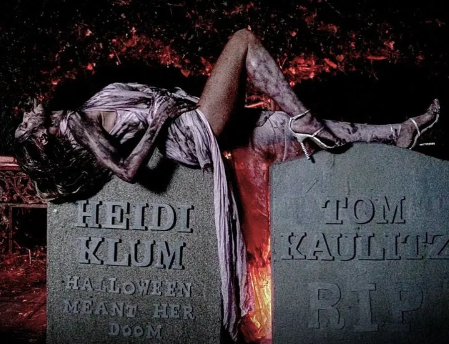 على مر السنين، قدمت لنا هايدي كلوم مجموعة من أزياء الهالوين المختلفة، بدءا من إطلالة جيسيكا رابيت المثيرة ووصولا إلى إطلالة الجدة المسنة التي تعاني من الدوالي، وفي ظل غياب حفل الهالوين السنوي في عام 2021، أصدرت فيلما مخيفا مدته سبع دقائق، لعبت فيه دور البطولة. ثم، في عام 2022، ارتدت زي الدودة الذي لا ينسى.