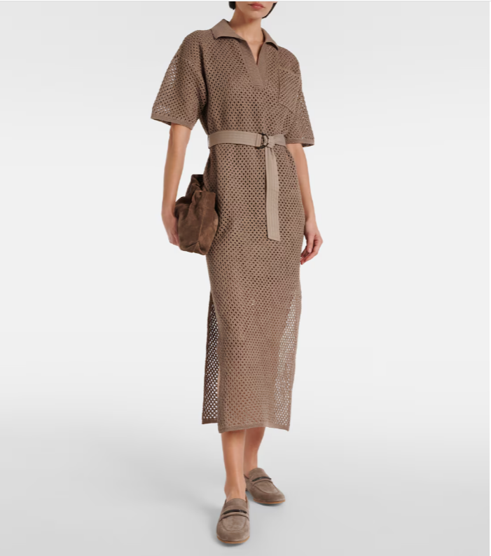 من علامة أزياء برونيلوو كويسينيللي، قد تعتمد الأميرة رجوة إطلالة الفستان المميز بياقة القميص، وقد سبق وأن أطلت بمجموعة قمصان أنيقة تلائمها، ومع بعض التعديلات، ستبدو إطلالتها أنيقة للغاية مع بطانيةؤباللون البيج أو الأبيض.