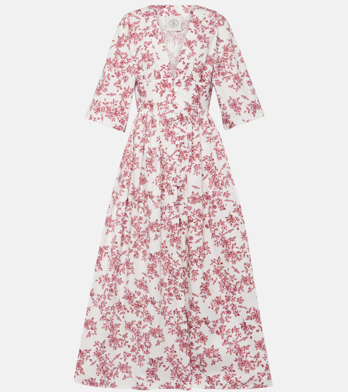 يتميز الفستان بقماش القطن والبولين الحريري، مع أجمل الطبعات الناعمة التي تزينه بالكامل مع قصة الأكمام المتوسطة الأنيقة، بالإضافة إلى حجم التنورة المميز، كما ستعتمد الأميرة في حال ارتدته بعض التعديلات على الياقة لتصبح أكثر احتشاما وبما يتناسب مع أسلوبها الراقي للغاية.
