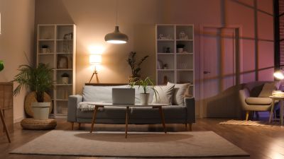 لمسات من إضاءة دافئة داخلية لإضفاء جو مريح ومسلي.