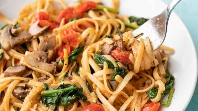 لينجويني بالفطر والخضروات الشهية: وصفة للنباتيين