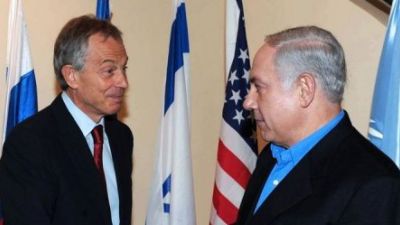 رئيس الوزراء الاسرائيلي بنيامين نتانياهو ومبعوث اللجنة الرباعية توني بلير
