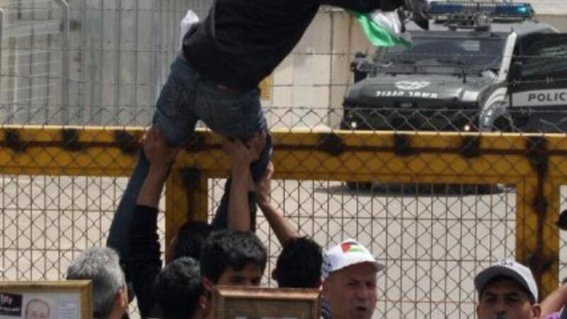 وتسلق عدد من الشبان المعتصمين سياج الاسلاك المحيط بالسجن، وعلقوا اعلاما فلسطينية على الاسلاك.