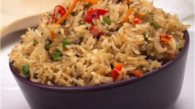 يضاف الأرز ويترك حتى يغلي ويغطى ومن ثم تهدأ النار حتى يتم نضج الأرز.