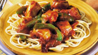 قدمي الوجبة مع الأرز أو المعكرونة.