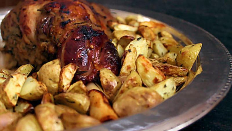 فخذ الخروف المشوي بالبطاطا