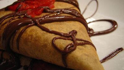 - ندهن العجينة بالنوتيلا ونضع الموز أو الفراولة حسب الرغبة.