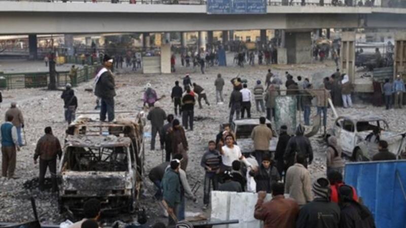 وفتح موالون لمبارك النار والقوا قنابل حارقة. وتحصن المحتجون بميدان التحرير والقوا عليهم الحجارة.
