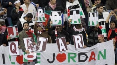 مشجعو منتخب النشامى يشجعون المنتخب الأردني في مباراته مع نظيره السوري والتي انتهت بفوز المنتخب الأردني 2-1.