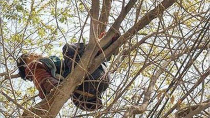 وقال أحدهم «في البداية لم نستطع أن نحدد مصدر صوت الشخير المرتفع، لولا أن أحد حذاءي المرأة سقط على رأس أحدنا فنظرنا الى أعلى لنكتشف ان هناك امرأة نائمة في وضع خطير عالياً على غصن الشجرة».