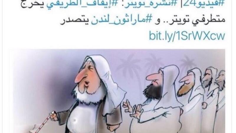 نشرت إحدى الصحف الإماراتية كاركاتير وصفها العديد بالمسيء للمملكة العربية السعودية فقد تضمن الرسم الكاركاتيري صورة لشيوخ ورجال الدين من السعودية تظهرهم وكأنهم إرهابيون وينتمون لتنظيم داعش، الأمر الذي أغضب عدد من النشطاء ودشن عدد من رواد تويتر هاشتاغ#اعلام_الامارات_يسيء_للسعوديه للتعبير عن رفضهم لهذا الرسم الكاركاتيري: