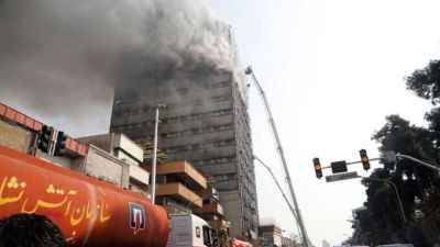إنهار مبنى مؤلف من 15 طابقًا وسط طهران أمس الخميس، بحسب الصور التي نقلها التلفزيون الإيراني الرسمي في بث مباشر، بعدما اندلعت النيران في طوابقه العليا.