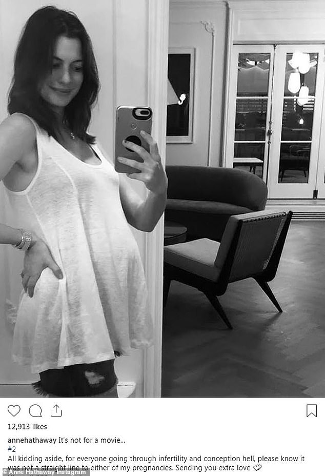 ونشرت آن صورة لها وهي ترتدي تيشيرت فضفاض، بينما كانت تمسك بظهرها، وألمحت في تعليقها بجانب الصورة أنها عانت من أجل الحمل، فأبدت بعض الحب للنساء اللواتي يعانين من مشاكل الخصوبة والعقم.