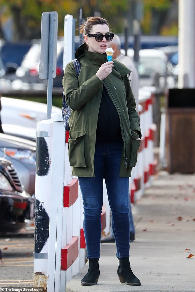 والتقطت كاميرات الباباراتزي آن وهي تتناول الآيس كريم بينما كانت ترتدي معطف باللون الزيتي مع بنطال جينز وبلوزة سوداء مطابقة للحذاء الذي انتعلته، كما اعتمدت تسريحة الكعكة المرتفعة ووضعت نظارات شمسية.