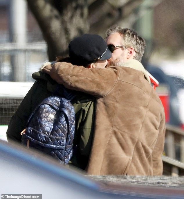 وانضم زوجها إليها في هذه النزهة النهارية حيث رُصدا وهما يقبلان بعضهما البعض خارج السوبر ماركت بينما كان آدم يرتدي معطف بيج من الصوف.
