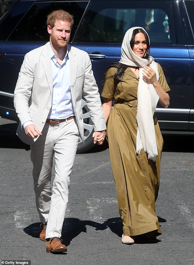 اختارت ميغان إطلالة محتشمة في زيارتها للمسجد إذ ارتدت فستان باللون الأخضر الزيتوني طويل وفضفاض وتوسّطه حزام من نفس الفستان، كما وضعت على رأسه وشاح أبيض احتراماً للتراث الإسلامي.
