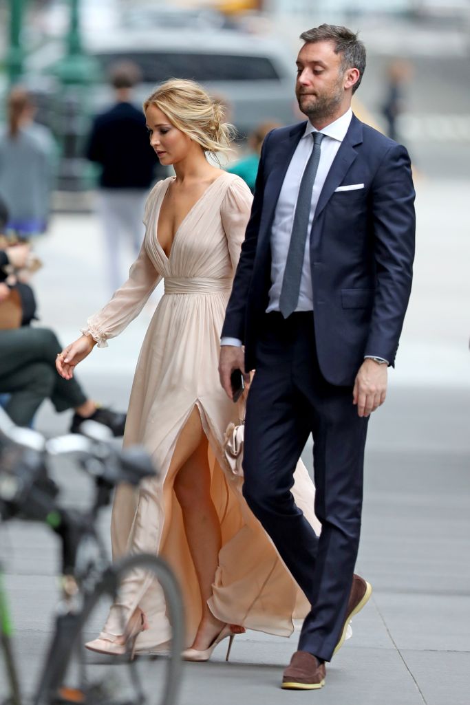 وذكر موقع  TMZ الإخباري، أن "لورانس" وخطيبها مدير معرض الفنون سافرا من نيويورك إلى رود آيلاند عبر طائرة خاصة يوم الجمعة.