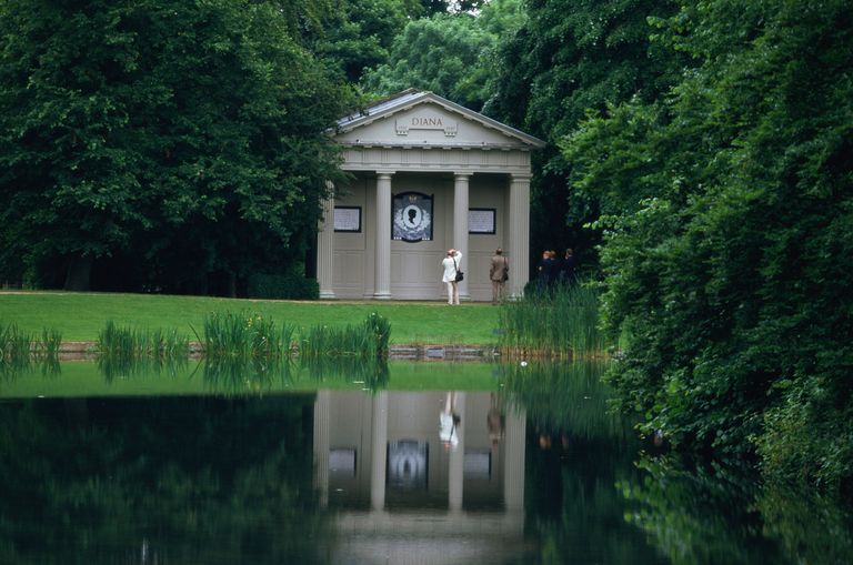 بعد الحادث المؤسف، دُفنت الأميرة ديانا في جزيرة مخصصة لأجلها في منطقة " ألثورب" الخاصة بعالتها في بلدة " نورثهامبتون"، كما تم بناء مقصورة لأجلها عند Oval Lake.