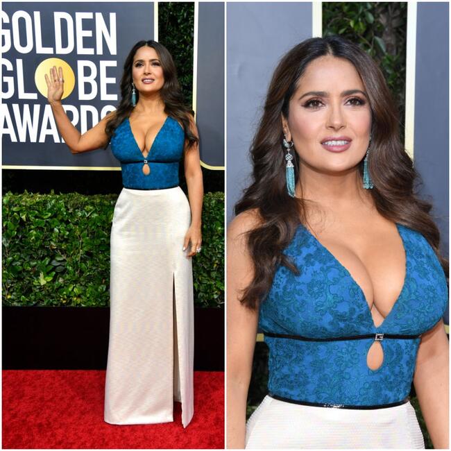 لا يمكننا تصديق ما اختارته النجمة المكسيكية ذات الأصول اللبنانية من دار الأزياء الفرنسية "غوتشي"، إذ ارتدت فستان نوعًا ما فاضح ناحية الصدر بفتحته الكبيرة مُبرزةً مفاتنها بطريقة مُلفتة، ويبدو أن مقاسه أصغر بثلاثة أضعاف عن مقاسها الحقيقي.
