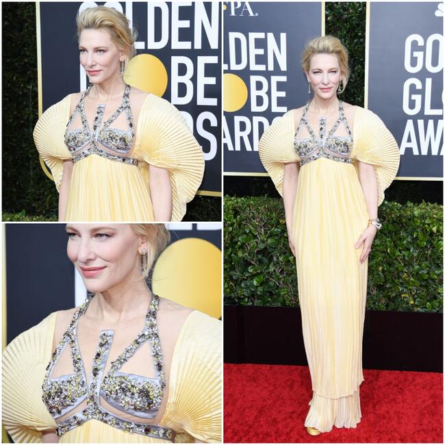 اختيار غير موفَّق للممثلة الاسترالية من توقيع مصممة "ماري كاترانزو"، فالتصميم غير متناسق مع جسدها كما بدت وكأنها طائر بسبب قصة الأكمام الفضفاضة.