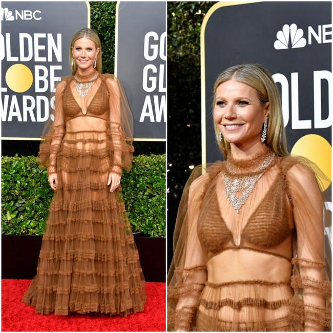 خيَّبت النجمة الأمريكية آمال معجبيها ومحبيها بإطلالتها العتيقة المكشوفة من العلامة التجارية "فيندي"، إذ ارتدت فستانًا بني من الشيفون الشفاف جاء بطبقات من الكشاكش، ويمكننا ملاحظة حمالة صدرها الغريبة.