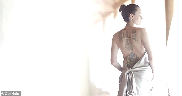 وكشف الفيديو نجمة فيلم  Maleficent وهي تبتسم بينما كانت تستمتع برائحة العطر الفخم وأشعة الشمس، إلى أن أظهرت وشمها الملفت للنظر.