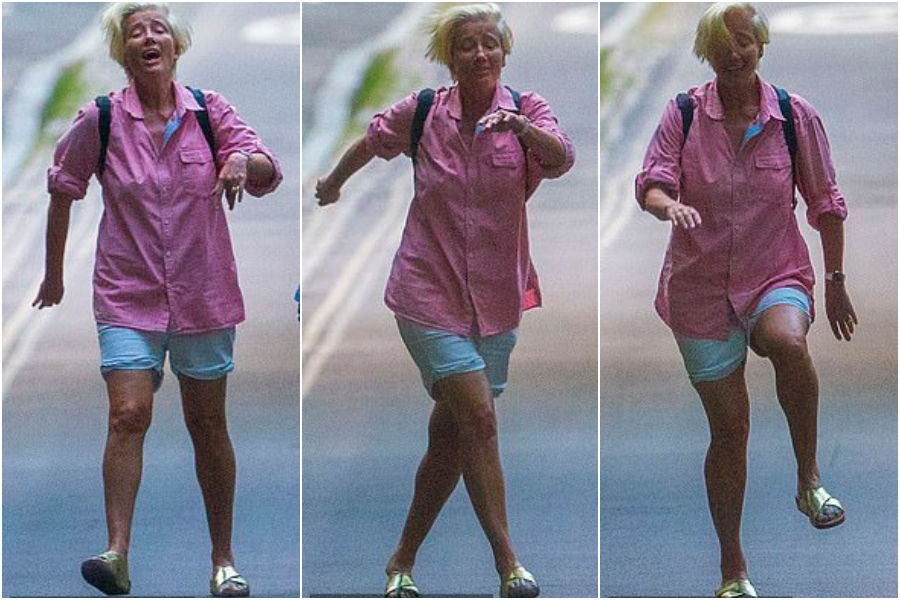 رصدت عدسات الكاميرا النجمة العالمية إيما تومبسون، البالغة من العمر 60 عامًا، والتي اشتهرت بدورها كمدرسة غريبة الأطوار في فيلم هاري بوتر والمربية المحافظة في فيلم "ناني مكفي"، وهي ترقص في الشارع وتؤدي حركات غريبة.